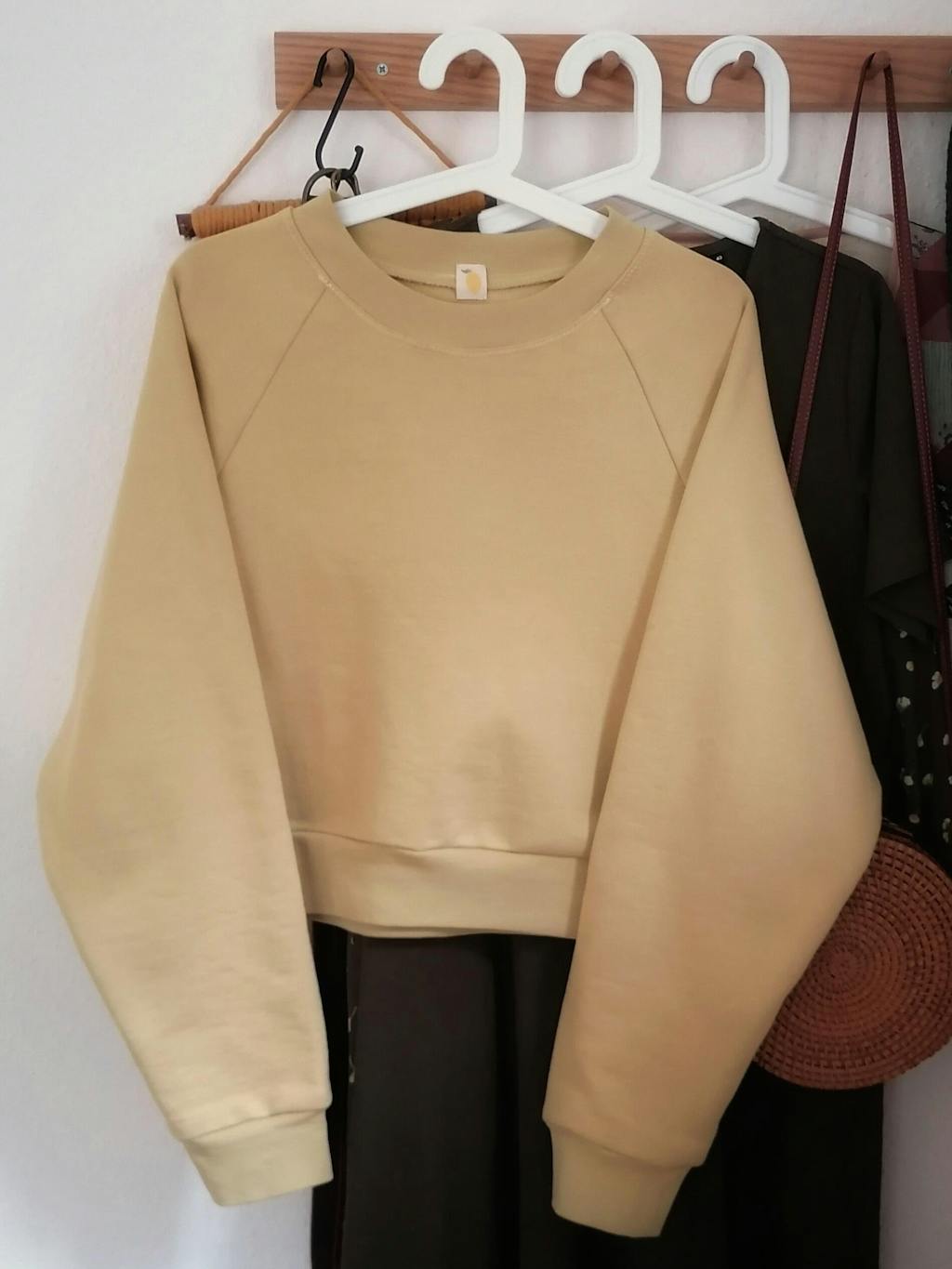 The Pine Raglan Sweatshirt is a classic sweatshirt with a comfortable, oversized fit. The neckband is slightly chunkier than a standard crewneck, giving the sweatshirt a vintage and unisex feel. View B has a cropped hem, giving the sweatshirt a more feminine feel. You can choose to make the whole sweatshirt in one fabric or use a rib knit for the neckband, waistband, and cuffs.
