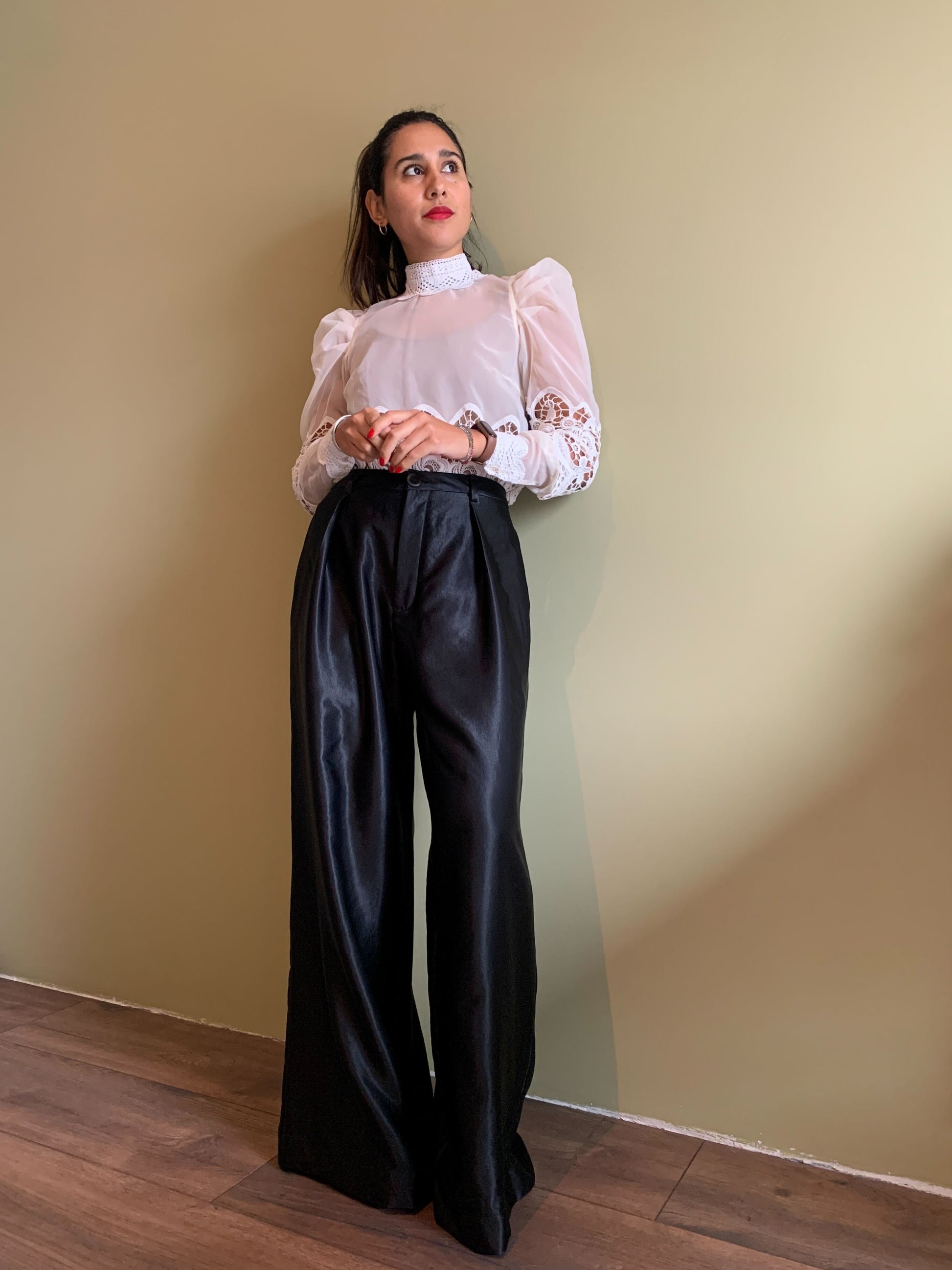 The Protea Pant is a modern trouser with chic front pleats, sweeping pant legs, and a curved waistband. It offers two ways of sewing the waistband. The first way is better for light-to midweight fabrics, and if you like the look of topstitching. The second method is for mid-to heavyweight fabrics, or if you like a clean, more traditional trouser waistband. View A has pleats in front, View B has a flat front. This pattern will teach you some fun techniques including: